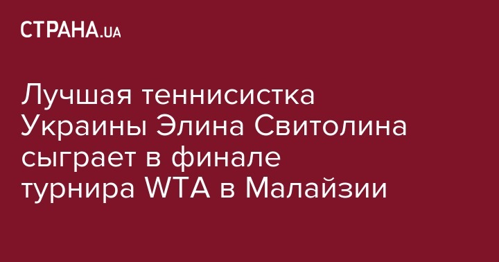 Лучшая теннисистка Украины Элина Свитолина сыграет в финале турнира WTA в Малайзии
