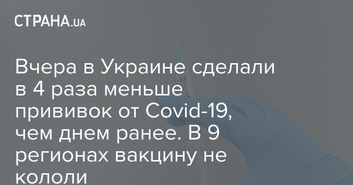 В Киеве и 8 областях Украины вчера не сделали ни одной прививки от коронавируса. Всего в стране 25 апреля вакцинировали 1 114 человек. Это в 4 раза меньше, чем 24 апреля, и почти в 13 раз меньше, чем в пятницу, 23.