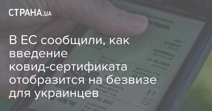Введение в Евросоюзе Цифрового зеленого сертификата (ЦЗС, ковид-сертификата - Ред.) для беспрепятственного передвижения в странах ЕС не повлияет на функционирование безвизового режима, в частности, с Украиной, Грузией и Молдовой.