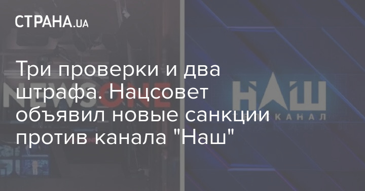 Нацсовет направил телеканалу "Наш" два предупреждения и наложил два штрафа по результатам трех проверок, которые проводились в период с августа по декабрь 2020 года.