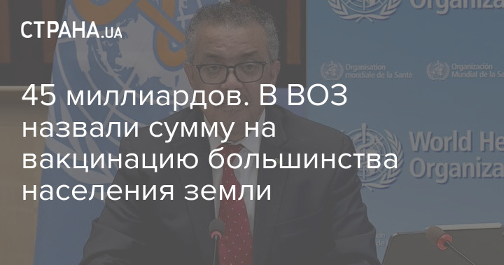 "По нашим оценкам, чтобы вакцинировать большинство взрослых людей в мире, в будущем году потребуется дополнительно от 35 до 45 млрд долларов", - заявил Гебрейесус.