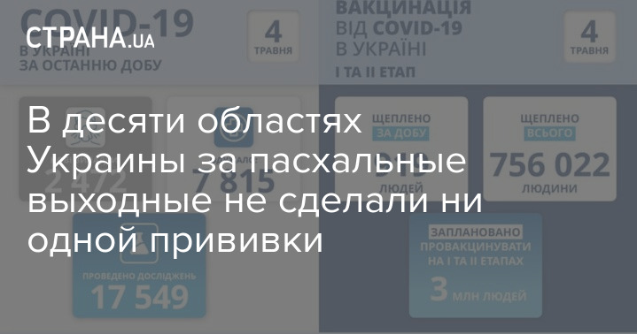 В Украине за время пасхальных выходных в 10 областях не сделали ни одной прививки против коронавируса COVID-19.