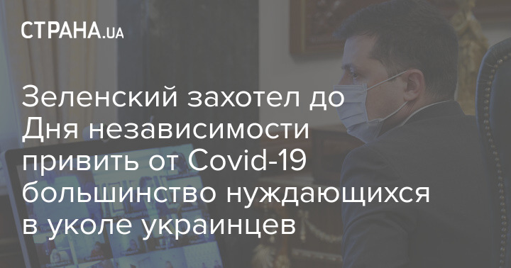 Президент Украины Владимир Зеленский поставил задачу вакцинировать от коронавируса большинство украинцев, "которые нуждаются в прививке от Covid-19", до Дня независимости, 24 августа.