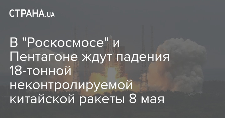 Между в "Роскосмосе", как и в Пентагоне, считают, что остатки 18-тонной ступени китайской ракеты могут сойти с орбиты и упасть на Землю 8 мая.