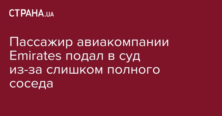 Адвокат из Италии, который летел из из Кейптауна в Дубай подал на авиакомпанию Emirates и потребовал выплатить ему компенсацию из-за тех неудобств, которые он испытывал все девять часов перелета из-за слишком полного соседа. Об этом сообщает Arabian Business.