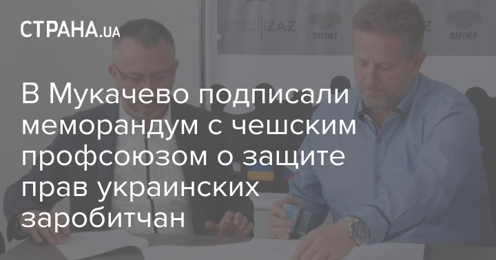 В Мукачево представители профсоюза "Партнер" и профсоюзной организации иностранных работников и сотрудников агентств Чешской Республики подписали меморандум в поддержку украинских заробитчан. Теперь украинцы, которые работают за рубежом, могут рассчитывать на квалифицированную юридическую, социальную и экономическую помощь.
