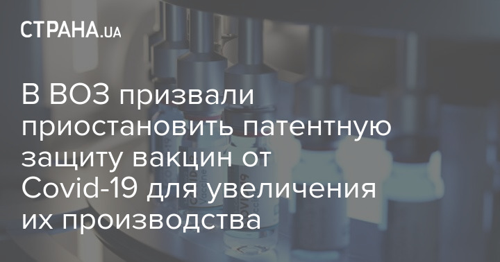В ВОЗ призвали приостановить патентную защиту вакцин от Covid-19 для увеличения их производства