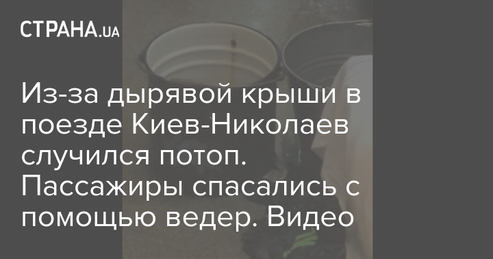 В поезде Киев-Николаев пассажирам пришлось держать возле себя ведра, так как на них лилась вода из-за дыр в потолке во время дождя.