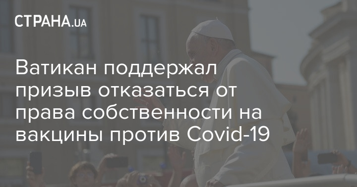 Папа Римский Франциск I поддержал идею законодательного отказа от прав интеллектуальной собственности на вакцины против COVID-19.