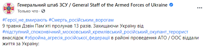 10:34 Генштаб ВСУ выпустил пост, который начинается со слов "Смерть российским врагам".