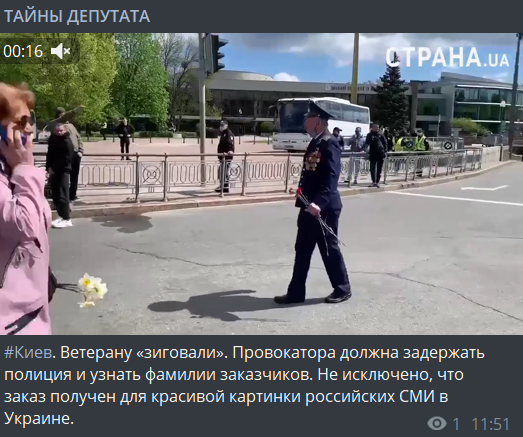 11:52 Лояльные Зеленскому телеграм-каналы уже пишут, что зиговавший ветерану националист - это "российская провокация".