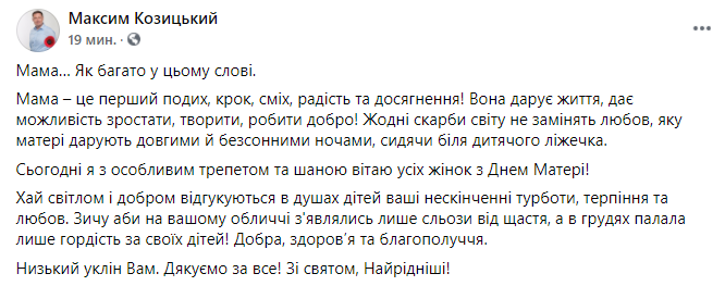 08:14 У мовного омбудсмена Тараса Креминя тоже сегодня день матери.