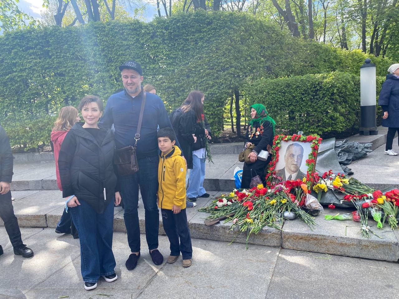 09:34 Ветеран войны, 95-летний Александр Иванович Ищенко, пришёл сегодня вместе с сыном Алексеем возложить цветы, а также почтить память своего брата — Геннадия, который погиб, защищая Сталинград.