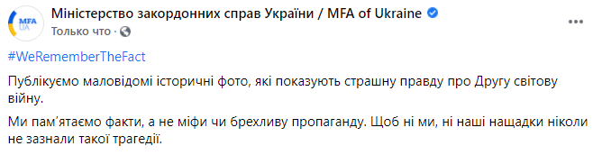 10:01 МИД Украины никого ни с чем не поздравляет, а публикует "страшную правду о Второй мировой войне". Общий посыл: праздновать нечего.