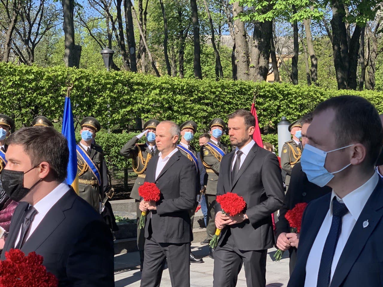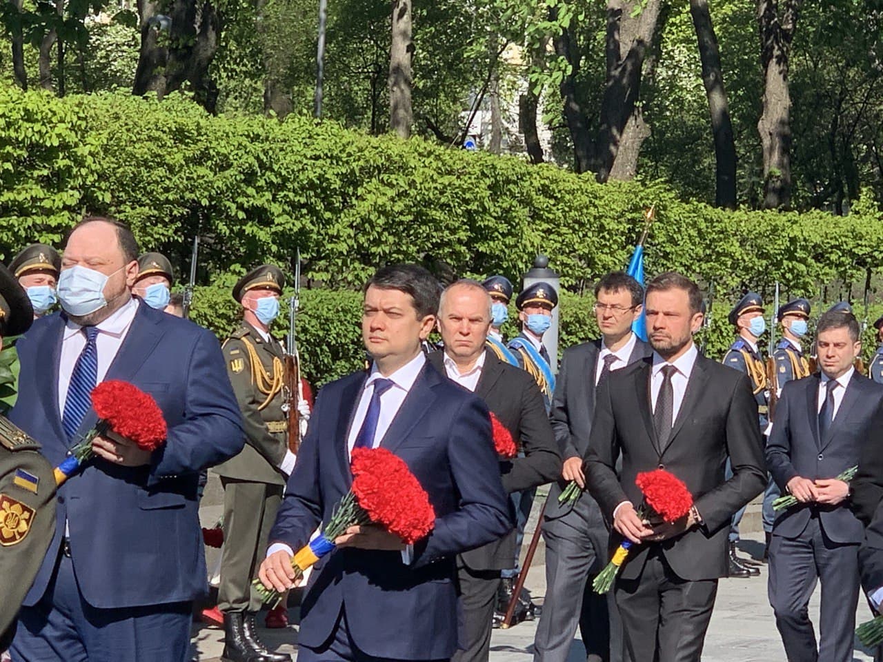 09:07 В Парк Славы потянулись депутаты. Приехало руководство парламента - спикер Разумков и его зам Стефанчук.