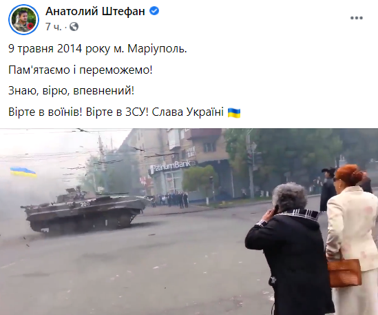 08:01 Офицер Генштаба ВСУ Анатолий Штефан по кличке "Штирлиц" опубликовал видео взятия Украиной Мариуполя 9 мая 2014 года.