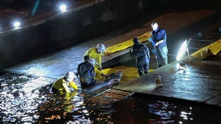 В Лондоне заплывший в Темзу кит застрял в шлюзе. Спасатели вызволяли его 4 часа. Видео