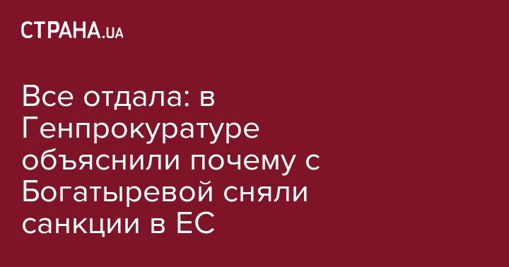 Все отдала: в Генпрокуратуре объяснили почему с Богатыревой сняли санкции в ЕС