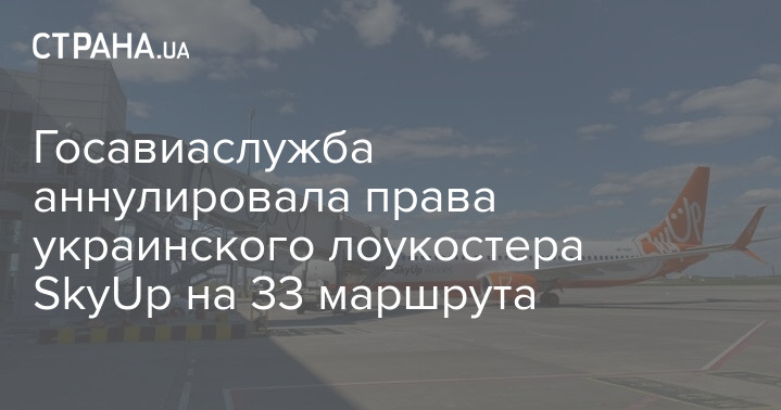 Государственная авиационная служба Украины аннулировала права лоукостера SkyUp на 33 маршрута на основании заявления компании.