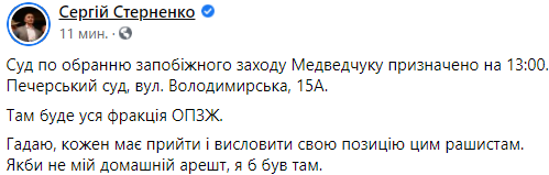 12:59  Медведчук под судом сказал, что "все будет нормально", и он готов ехать в СИЗО, "если повезут".