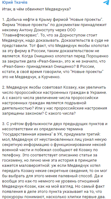18:17  Журналист Юрий Ткачев делает выводы из озвученных сегодня обвинений в адрес Медведчука.