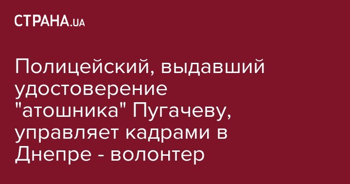 Полицейский, выдавший удостоверение "атошника" Пугачеву, управляет кадрами в Днепре - волонтер