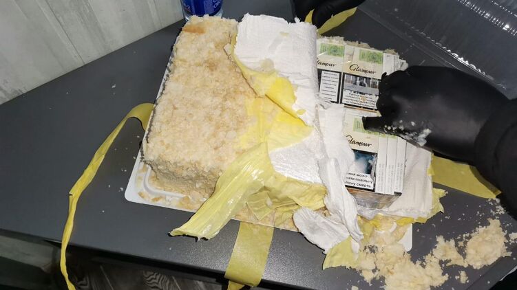 Украинец пытался провести в Румынию торт "Наполеон", напичканный 79 пачками сигарет. Фото и видео
