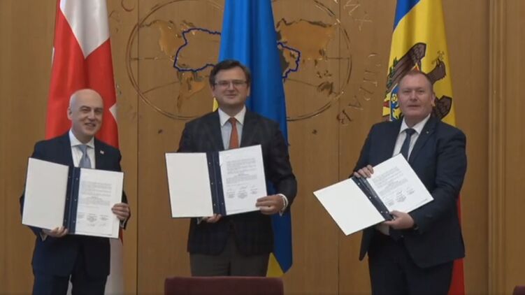 Свои подписи под трехсторонним меморандумом сегодня, 17 мая, поставили министры иностранных дел Украины, Грузии и Молдовы Дмитрий Кулеба, Давид Залкалиани и Аурелиу Чокой.