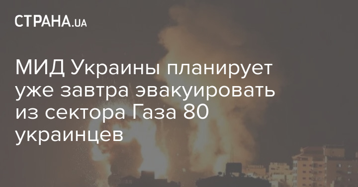 Эвакуация 80 украинских граждан из сектора Газа, где продолжается вооруженный конфликт между Израилем и Палестиной, запланирована на среду, 19 мая.