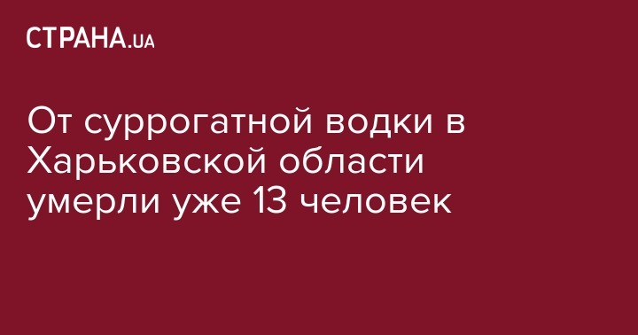 Число жертв  водки из непищевого спирта в Харьковской области выросло - на 26 сентября количество жителей, которые умерли от отравления суррогатным спиртным, увеличилось до 13, а пострадавших - до 22.