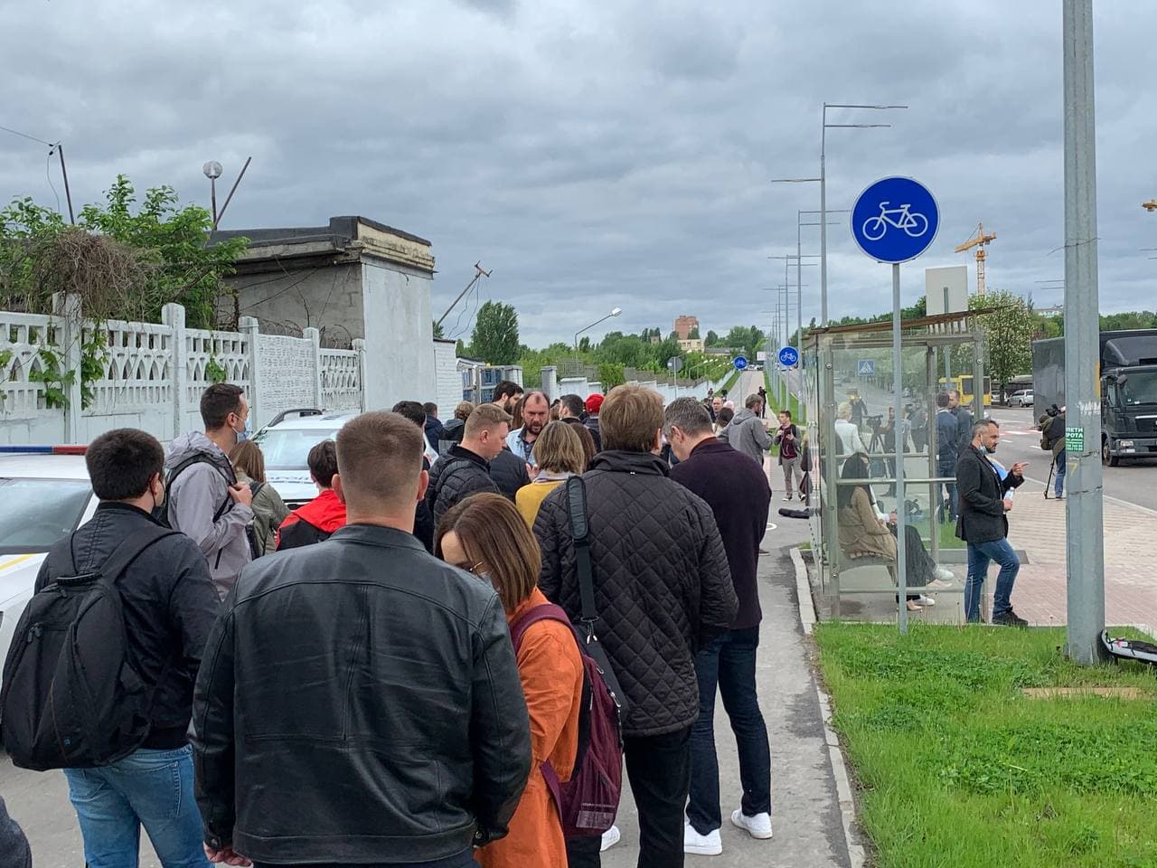 10:19  Журналисты уже становятся в очередь на регистрацию у проходной завода "Антонов".