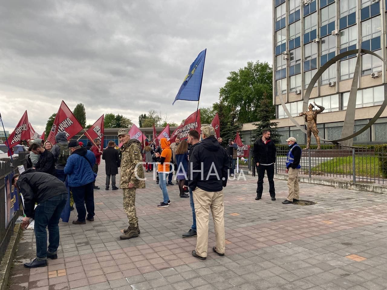 11:14  Националисты у входа в "Антонов". Кричат "Свободу Стерненко!".