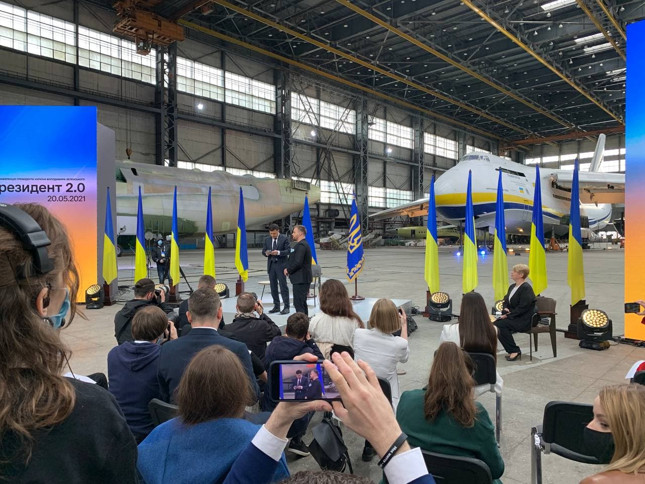 Большую пресс-конференцию Владимира Зеленского проведут на авиазаводе - в ГП "Антонов" в Киеве. Начало анонсировано на 12:00.