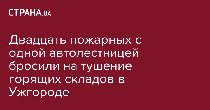 В Ужгороде загорелись складские помещения, расположенные по ул. Бабьяка. В тушении пожара задействованы 20 бойцов ГосЧС и 4 единицы спецтехники - 3 автоцистерны и 1 автолестница, сообщает УНН со ссылкой на пресс-секретаря Управления ГосЧС в Закарпатской области Наталию Батыр.