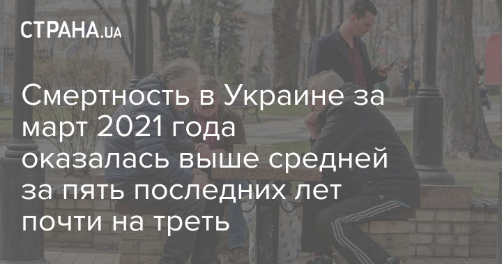 Смертность в Украине, зафиксированная в марте 2021 года, в сравнении со средним показателем за пять лет с 2016 по 2020 год включительно, выросла на 29%.