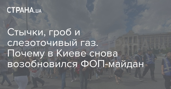 Во вторник, 29 июня, в Киеве прошел очередной "ФОП-майдан" - с перекрытием улиц, маршем с траурными венками и гробом, стычками с полицией и слезоточивым газом.