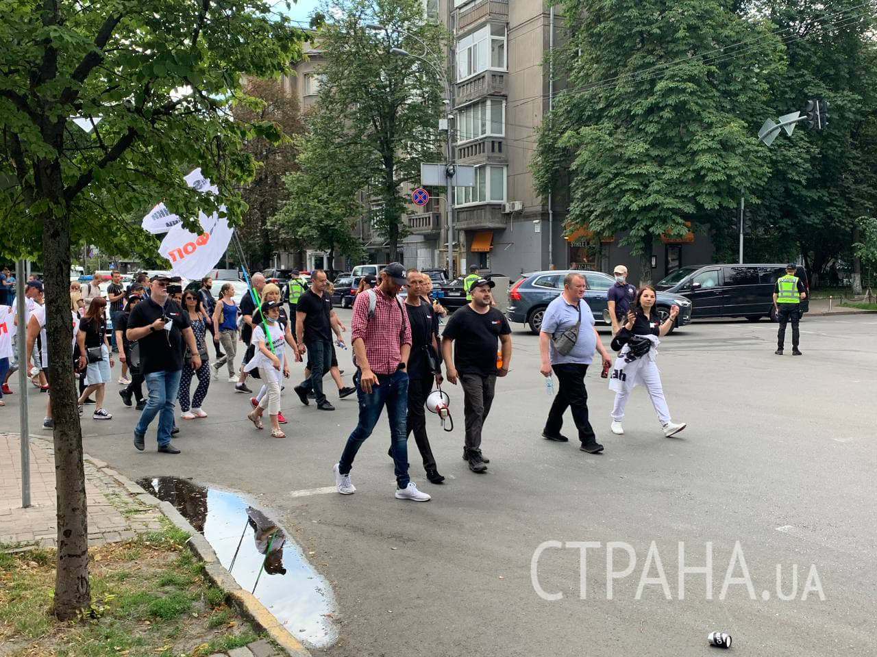 Часть активистов прорвалась через цепь полицейских и правоохранители отступили. Колонна продолжила движение к Офису президента на Банковой под флагами "SAVE ФОП".