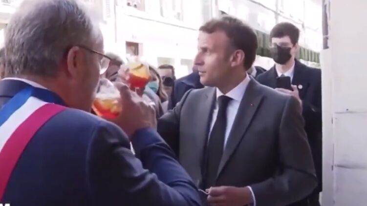Президент Франции посетил террасу одного и ресторанов Парижа, которым разрешили работу после длительного карантина. Там лидера государства угостили коктейлем и кто-то из людей вокруг крикнул на украинском языке: "Будьмо!". В ответ Макрон улыбнулся и поднял бокал со словами: "За Украину", после чего сделала глоток коктейля.