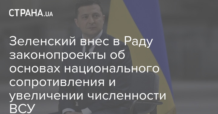 Президент Украины Владимир Зеленский предлагает парламенту принять Закон об основах национального сопротивления, а также законопроект об увеличении численности Вооруженных сил Украины в связи с принятием закона "Об основах национального сопротивления".