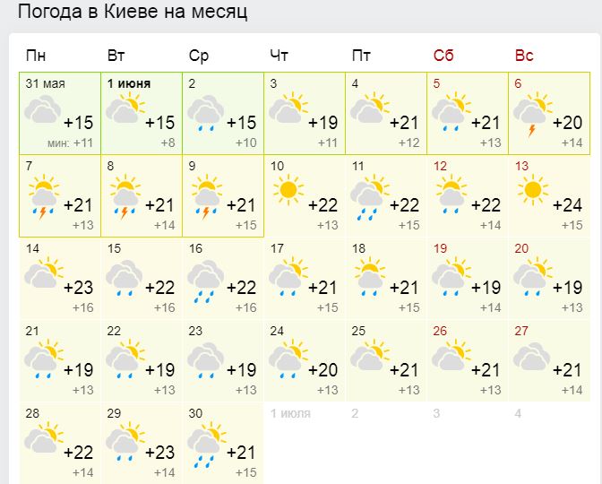 Погода в Киеве в июне. Прогноз сайта Gismeteo