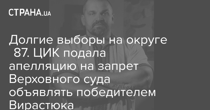 Долгие выборы на округе №87. ЦИК подала апелляцию на запрет Верховного суда объявлять победителем Вирастюка