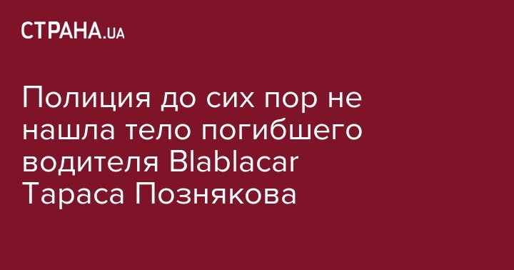Поиски тела погибшего водителя Blablacar Тараса Познякова продолжаются. Об этом сообщили в пресс-службе ГУ Нацполиции в Киевской области, передает УНН.