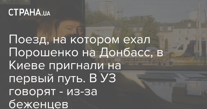 В Киеве поезд, перед отправлением в Донецкую область, перевели на соседний путь. Как сообщают очевидцы, вероятно, это было сделано для удобства экс-президента Петра Порошенко, который вместе с Ириной Геращенко отправлялся на Донбасс в этом поезде.