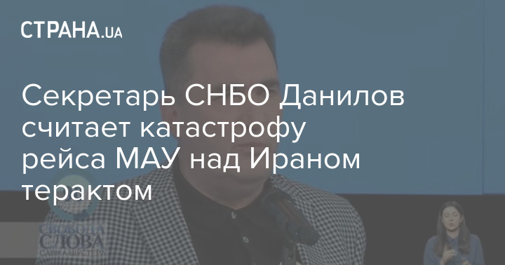 Секретарь Совета национальной безопасности и обороны Украины Алексей Данилов поддержал версию о том, что катастрофа "Боинга" компании "Международные авиалинии Украины" 8 января 2020 года в Иране, - это теракт.