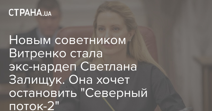 Новым советником Витренко стала экс-нардеп Светлана Залищук. Она хочет остановить "Северный поток-2"