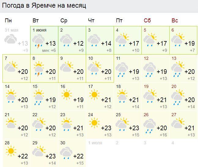 Прогноз погоды на июнь в Карпатах, Gismeteo