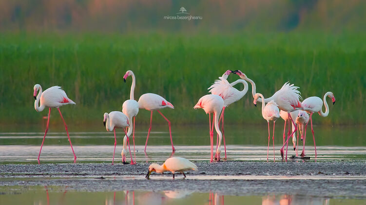 Около 60 птиц бывшие сотрудники заповедника заметили 21 мая, когда пернатые направлялись в сторону острова Ермаков. К сожалению, запечатлеть на фото неожиданных гостей не удалось. Но птицы далеко не полетели и через пару дней уже поступила информация от румынских коллег, которые увидели сразу две стаи фламинго на своей территории.
