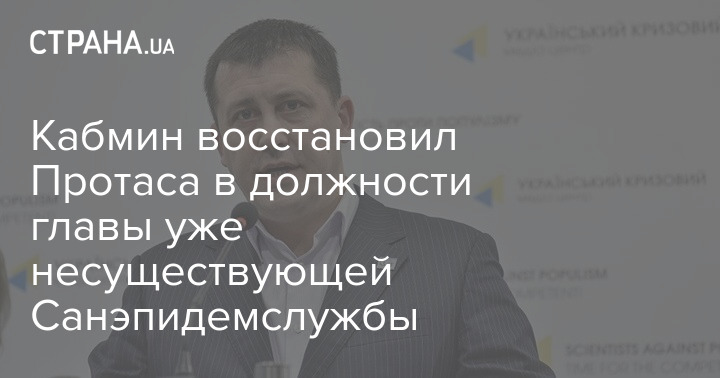Сама структура, в которую в Кабмине решили вернуть Протаса, ликвидирована - СЭС уже не существует. То есть Протаса восстановили в должности в несуществующем органе.