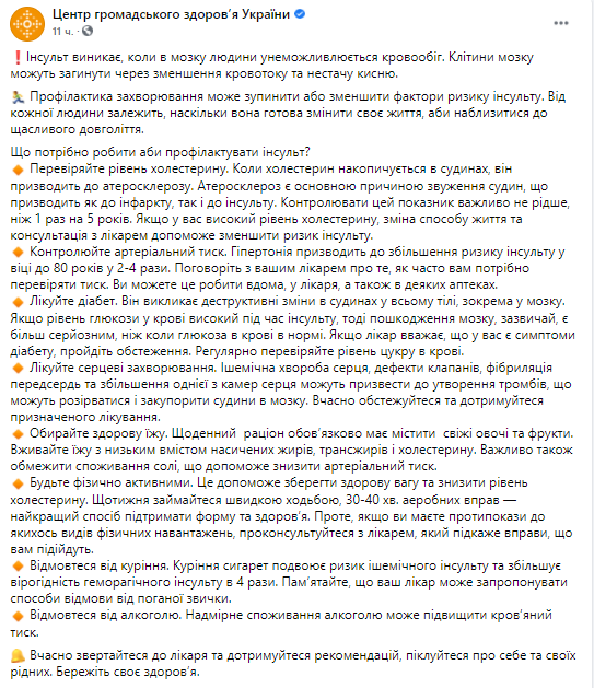 Медики объяснили украинцам, как уменьшить риск возникновения инсульта