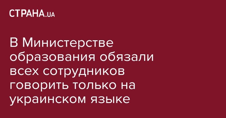 Министерство образования Украины (Минобраз) документально обязало всех своих сотрудников, во время выполнения служебных обязанностей, разговорить исключительно на украинском языке. Об этом в Facebook сообщил заместитель министра образования Роман Греба.